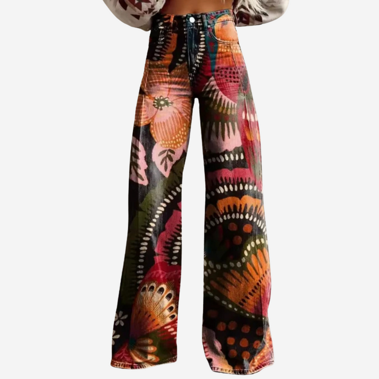 Ces pantalons larges à taille haute allient confort et style avec une touche bohème et ludique. Parfaits pour tout, des festivals de musique aux sorties en café – ou simplement pour ces jours où vous avez besoin de plus de couleur dans votre vie.