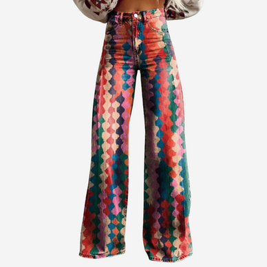 Ces pantalons larges à taille haute allient confort et style avec une touche bohème ludique. Parfaits pour tout, des festivals de musique aux sorties en café – ou simplement pour ces jours où vous avez besoin d'un peu plus de couleur dans votre vie.