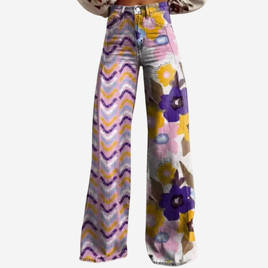 Ces pantalons larges à taille haute allient confort et style avec une touche bohème ludique. Parfaits pour tout, des festivals de musique aux sorties en café – ou simplement pour ces jours où vous avez besoin d'un peu plus de couleur dans votre vie.